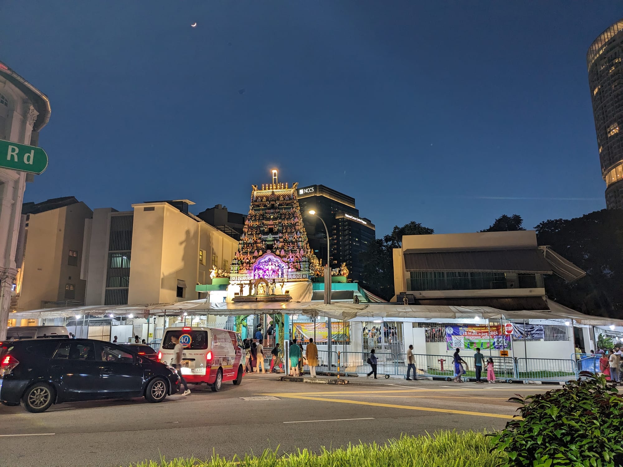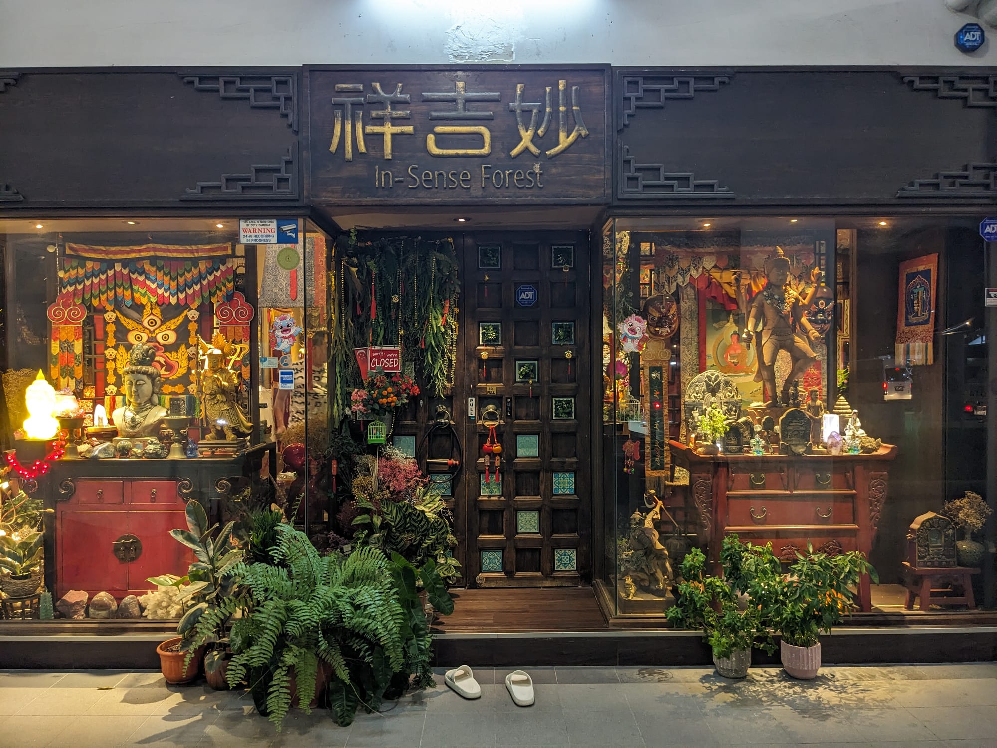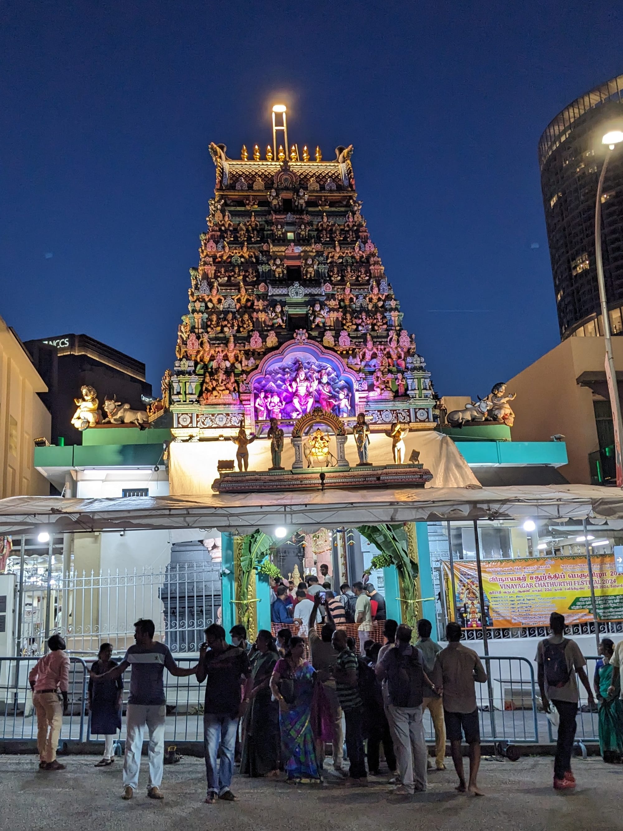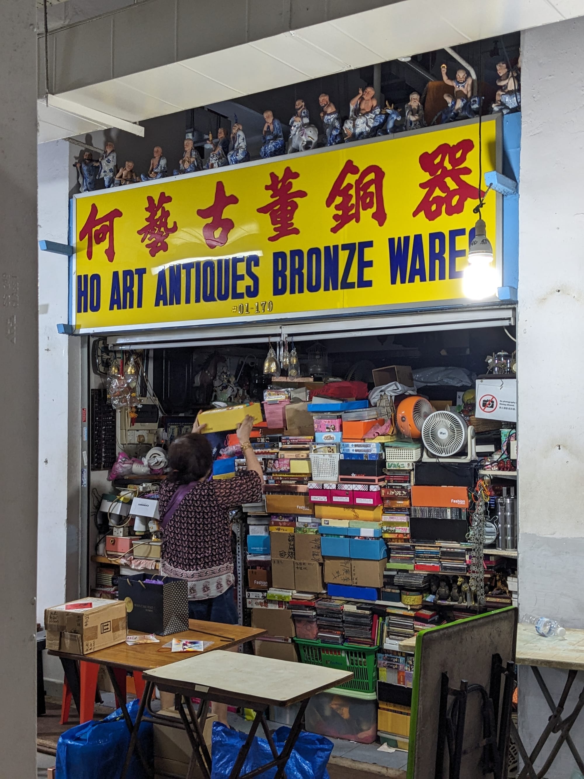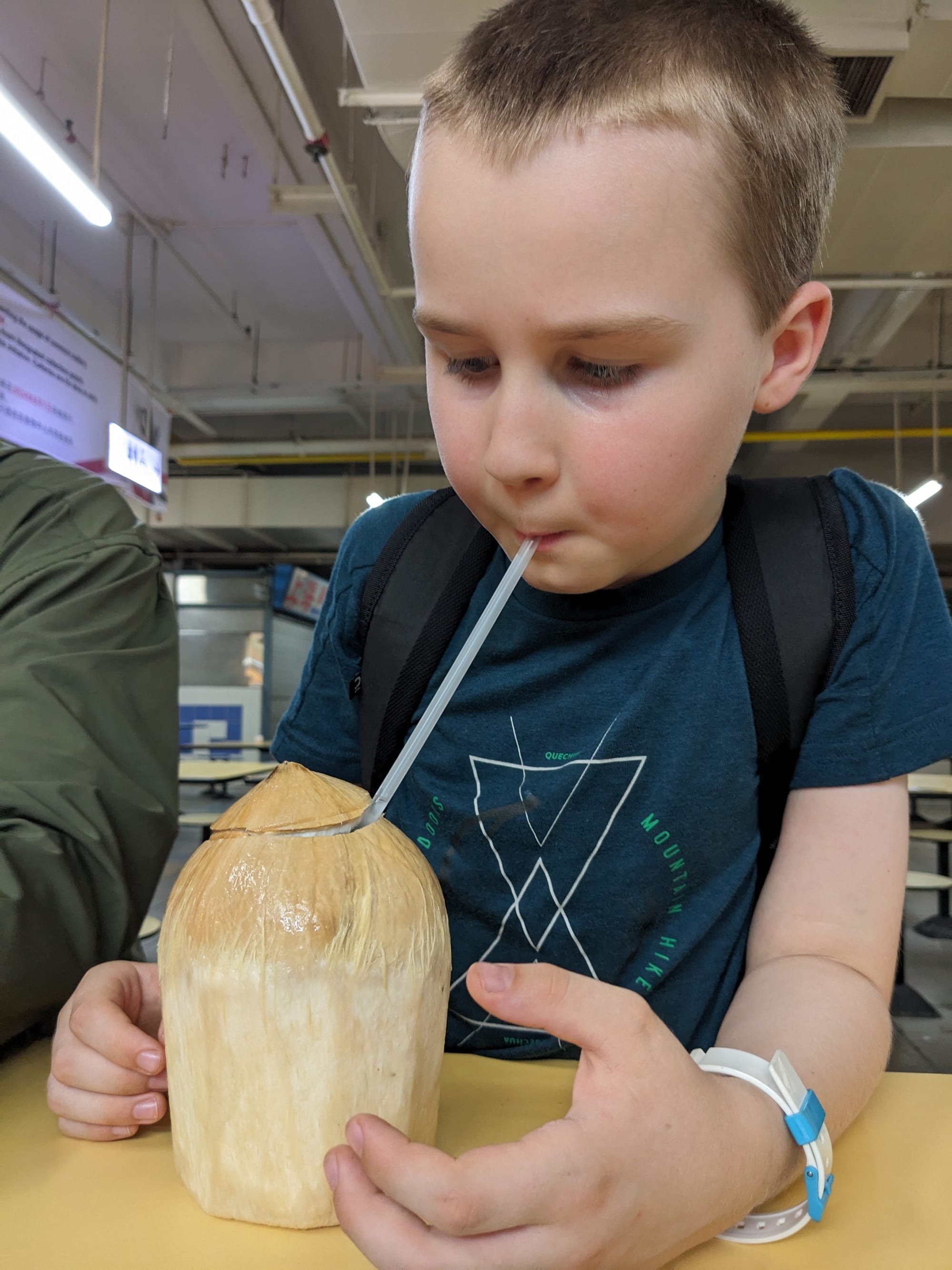 A mural outside a shop specialising in durian desserts.Sri Layan Sithi Vinayagar, a famous Hindu temple. We learnt during Friday's walking tour that both the Indian and Chinese communities lived around here when the temple was built in 1925, but as the Chinese population increased the Indian community moved across the river to what is now Little India.Loud music emanated from inside the temple and it was packed with devotees, who were lined up into the street with car horns blaring at them.A shop selling Tibetan Buddhism goods.I remembered buying a "double happiness" (marriage) sticker from a shop like this on my first visit to Singapore in 2006. When I saw this shop I thought it might be the same one, but then I realised there was one on every corner around here!This vendor knew exactly how to fit all of this in before she pulled the roller door down! 😅The boys waiting for what they thought were steamed pork buns (a firm favourite of theirs)...... but that were actually xiao long bao (soup dumplings)...... which F told us all about due to having read about them in Ghost Book by Remy Lai! And luckily they enjoyed them.B with his "Chinese-style Crispylicious Chicken Burger". $4.80 SGD = $5.52 AUD.My absolutely scrumptious sweet and sour fish! $6 SGD = $6.91 AUD.We tried coconut milk (the boys didn't like it) and passionfruit juice (the boys loved it).A street in Chinatown.There were lots of fantastic murals!Our final glimpse of Chinatown before catching the MRT back to our accommodation.